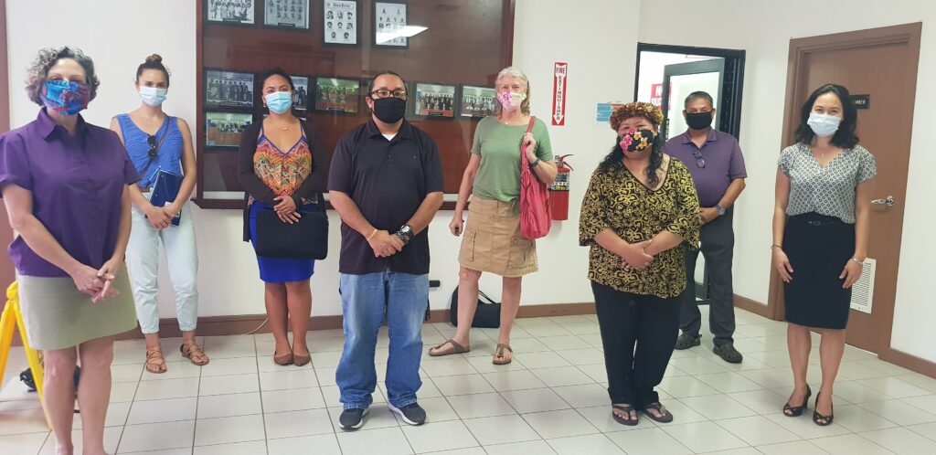 House Committee on Foreign and Federal Affairs Chairman Luis John Castro, center, and committee members, Rep. Tina Sablan, right, Rep. Richard Lizama, second right, and House Joint Resolution 21-8 author, Rep. Sheila Babauta, third left, pose with officers and members of Our Common Wealth 670 after a committee meeting in the speaker’s conference room on Tuesday. Photo by Emmanuel T. Erediano